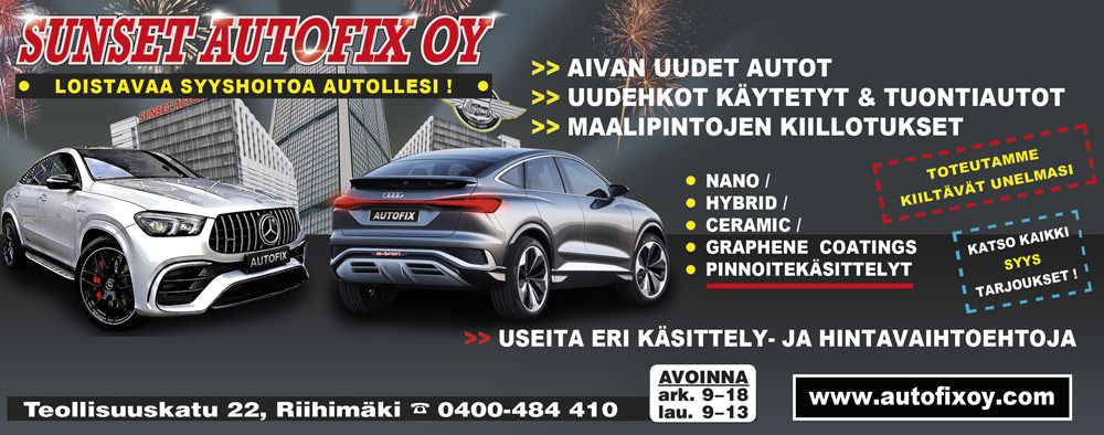 - Vuonna 1992 perustettu Sunset Autofix Oy viettää nyt 33v toimintavuotta
